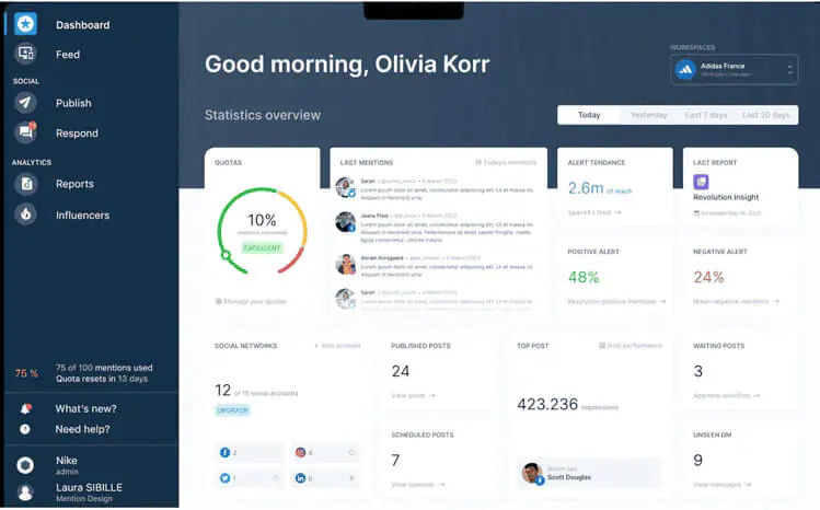 Mention.com is a great choice for businesses that require real-time monitoring combined with historical data access and collaborative features. It’s well-suited for mid-sized companies.