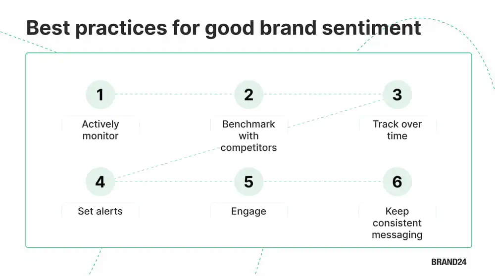 Remember about active monitoring, benchmarking with competitors, and engaging with your audience to maintain good brand sentiment.