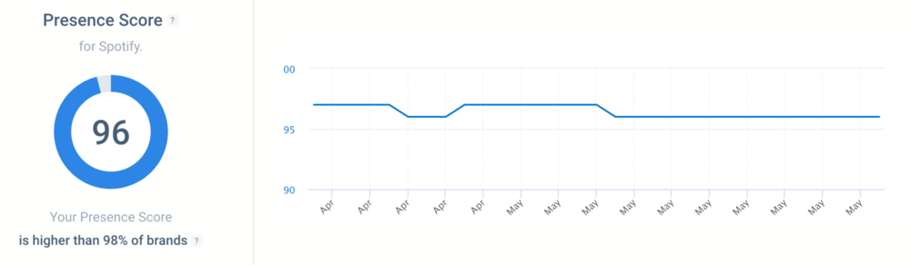 In the previous month, Spotify left Tidal behind and received 783,000 mentions. This shows their significant lead in market and brand awareness. With a Presence Score of 96 and a social media reach of 2.7 billion, Spotify is dominating the music arena.