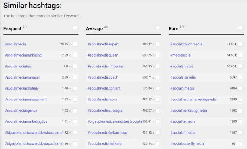 The generated list is quite extended, so you will need to pick the right hashtags that match your needs.