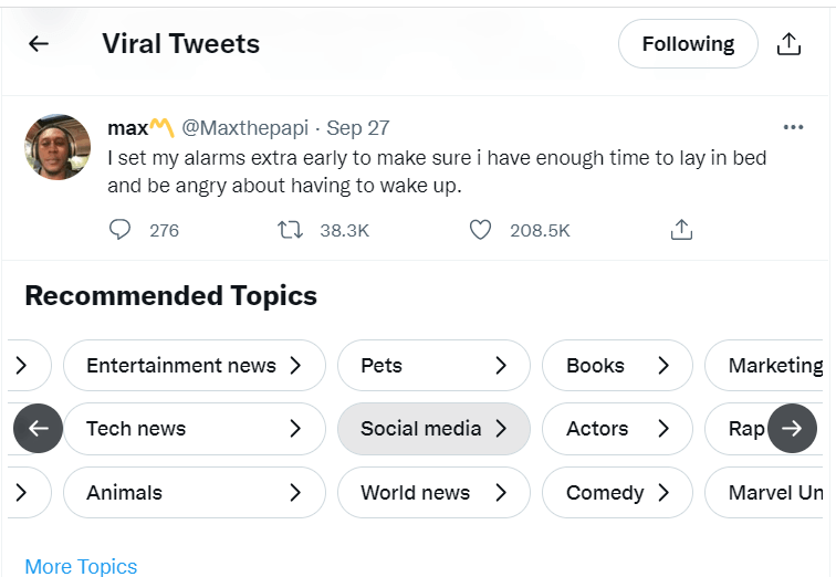 If you want to go viral with your tweets, you definitely should pay attention to viral tweets. You can choose topics that interest you the most.