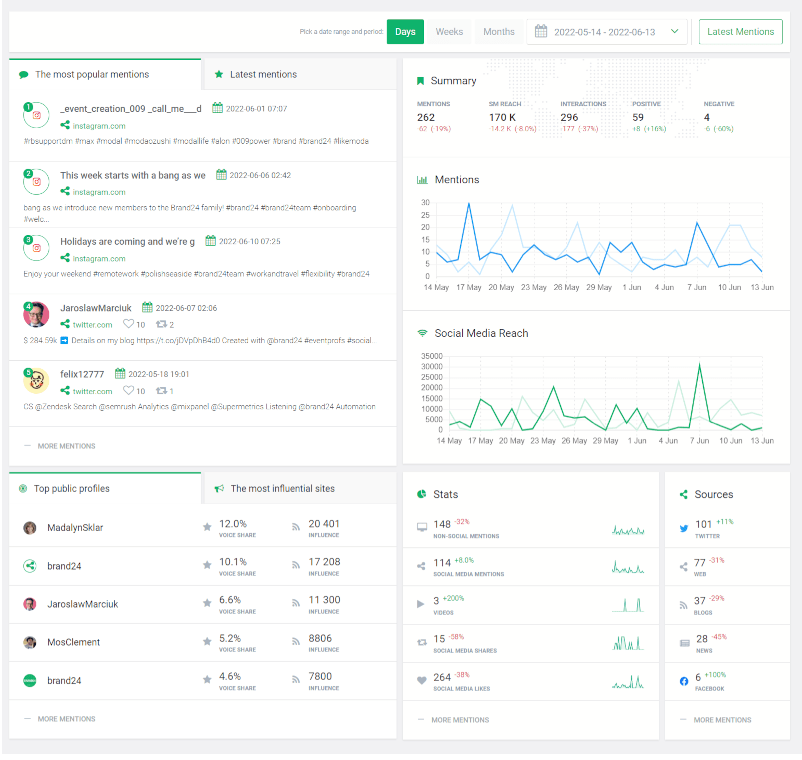 The best solution, in this case, is choosing tools that are more affordable but still advanced at the same time. Brand24 is a social listening software that matches this description.