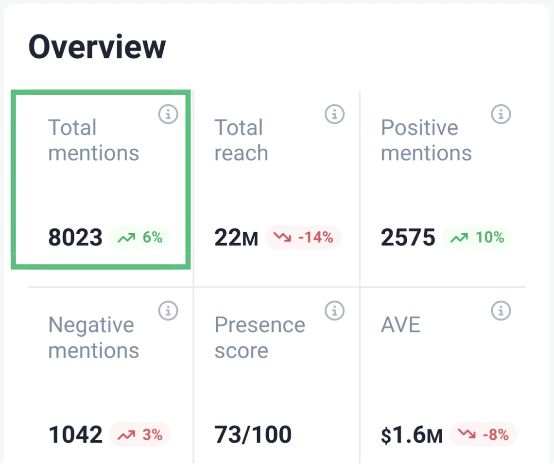 A high volume of mentions can indicate strong visibility and relevance while also boosting your reach through exposure to new audiences.