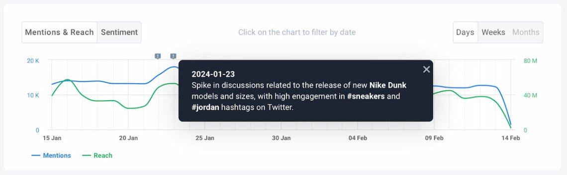 You can track if the attitude towards your brand is getting more positive or negative, identify your key communication channels, and spot sudden changes that can impact your overall reputation.