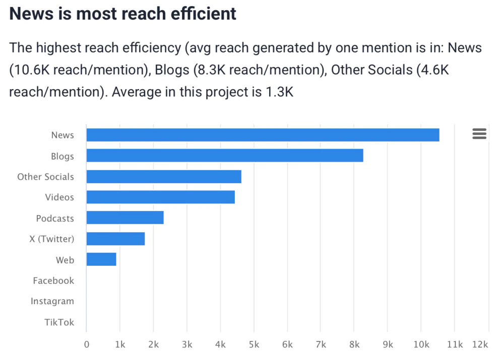 Additionally, you can check which platform your brand appears on is most reach-efficient. This supports strategic content planning and business reputation management.